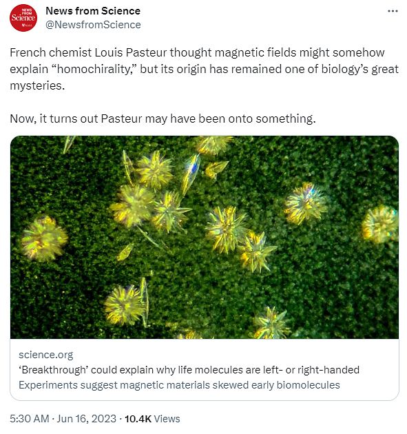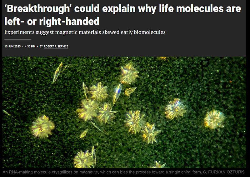 “It is a real breakthrough” says origin of life chemist and Nobel laureate Jack Szostak, “Homochirality is essential to get biology started, and this is a possible – and I would say very likely – solution.”