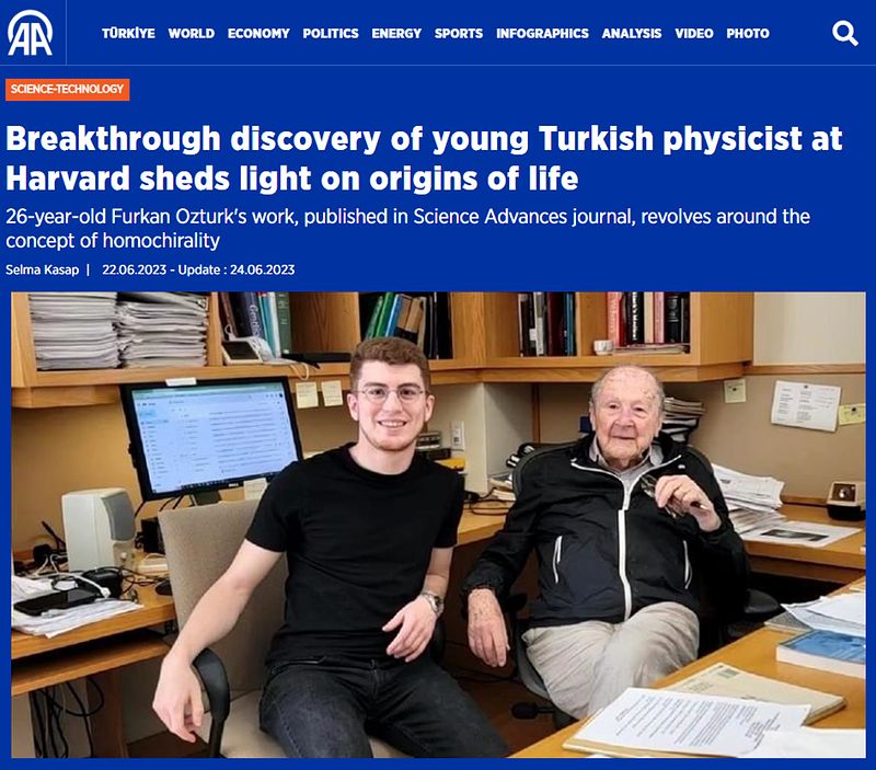 "Dimitar Sasselov and Furkan Ozturk at Harvard University led experiments that suggested magnetic surfaces in lakes could have imposed homochirality on vital biomolecules at the beginning of life’s history." by Quanta Magazine